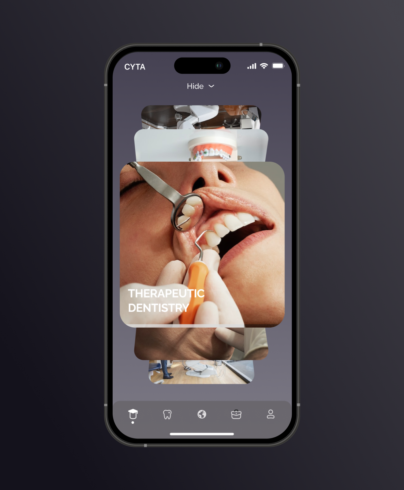 The mobile application is a visual video tutorial designed to master the basic manual skills of students in various areas of dentistry. The application is a collection and easy access to videos that demonstrate the implementation of basic dental procedures