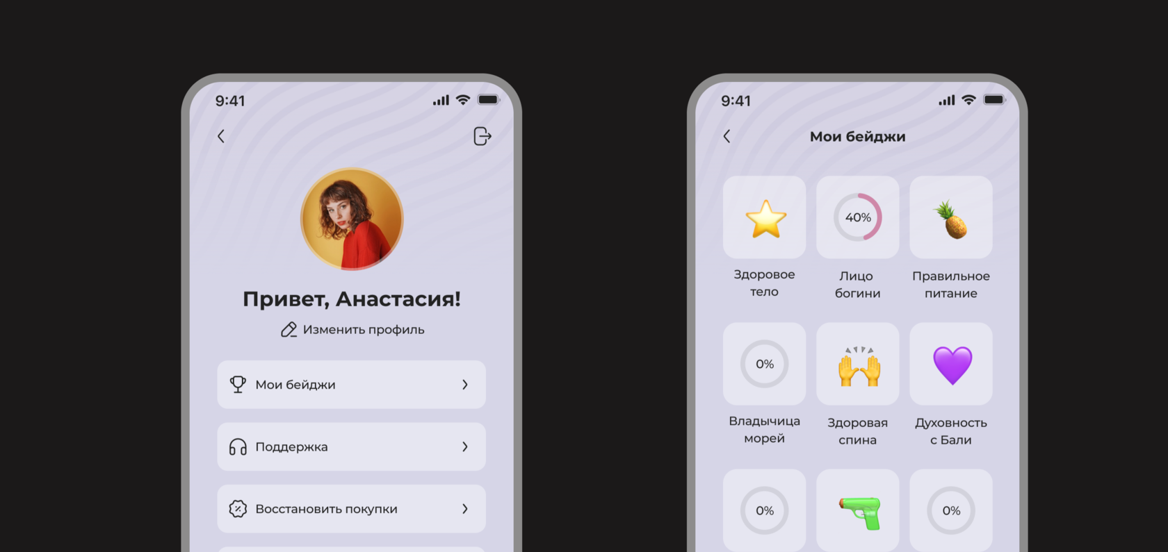 When completing playlists, you can earn badges as a sign of achievement. By collecting them, a person can not only stand out but also get a discount on the paid features of the app