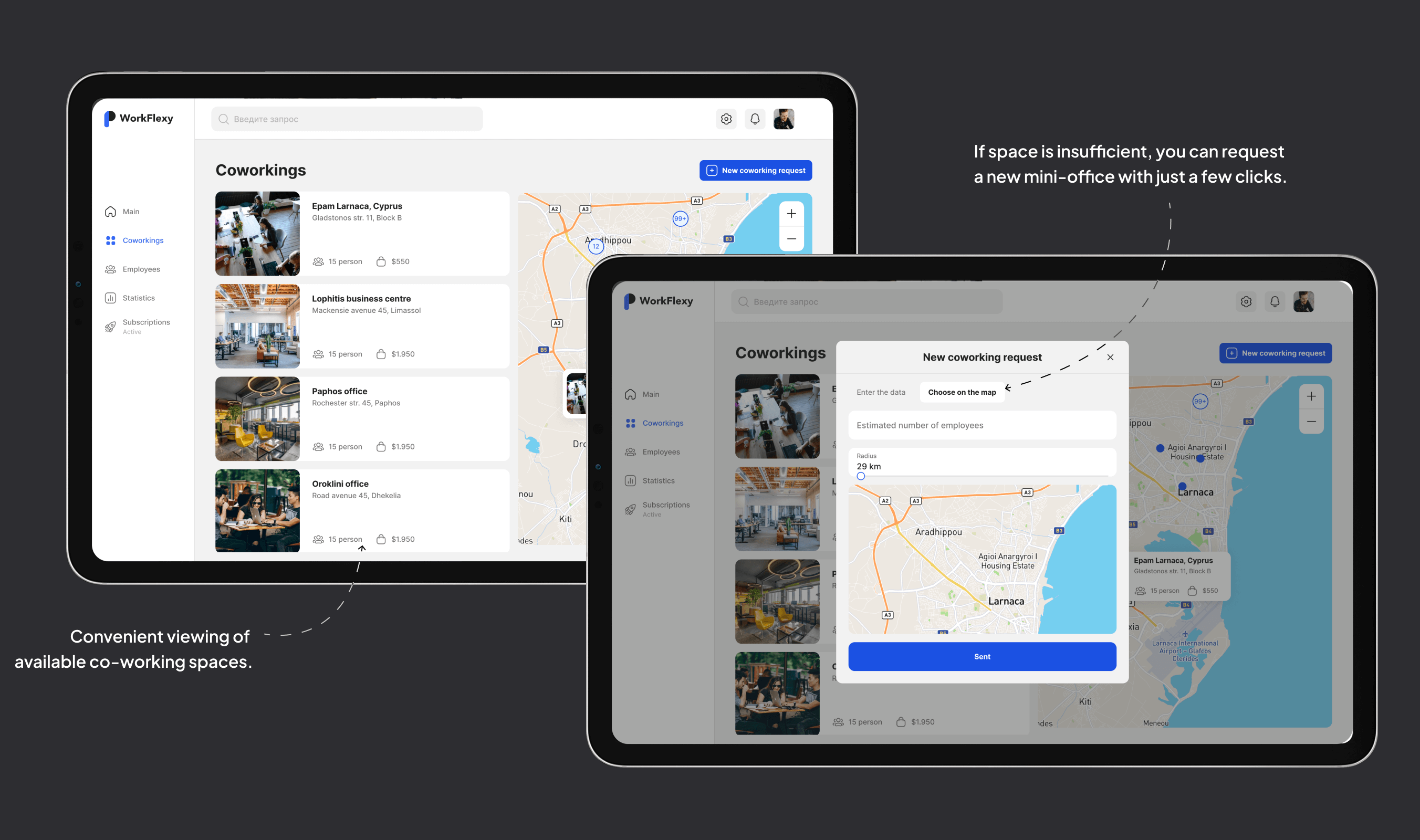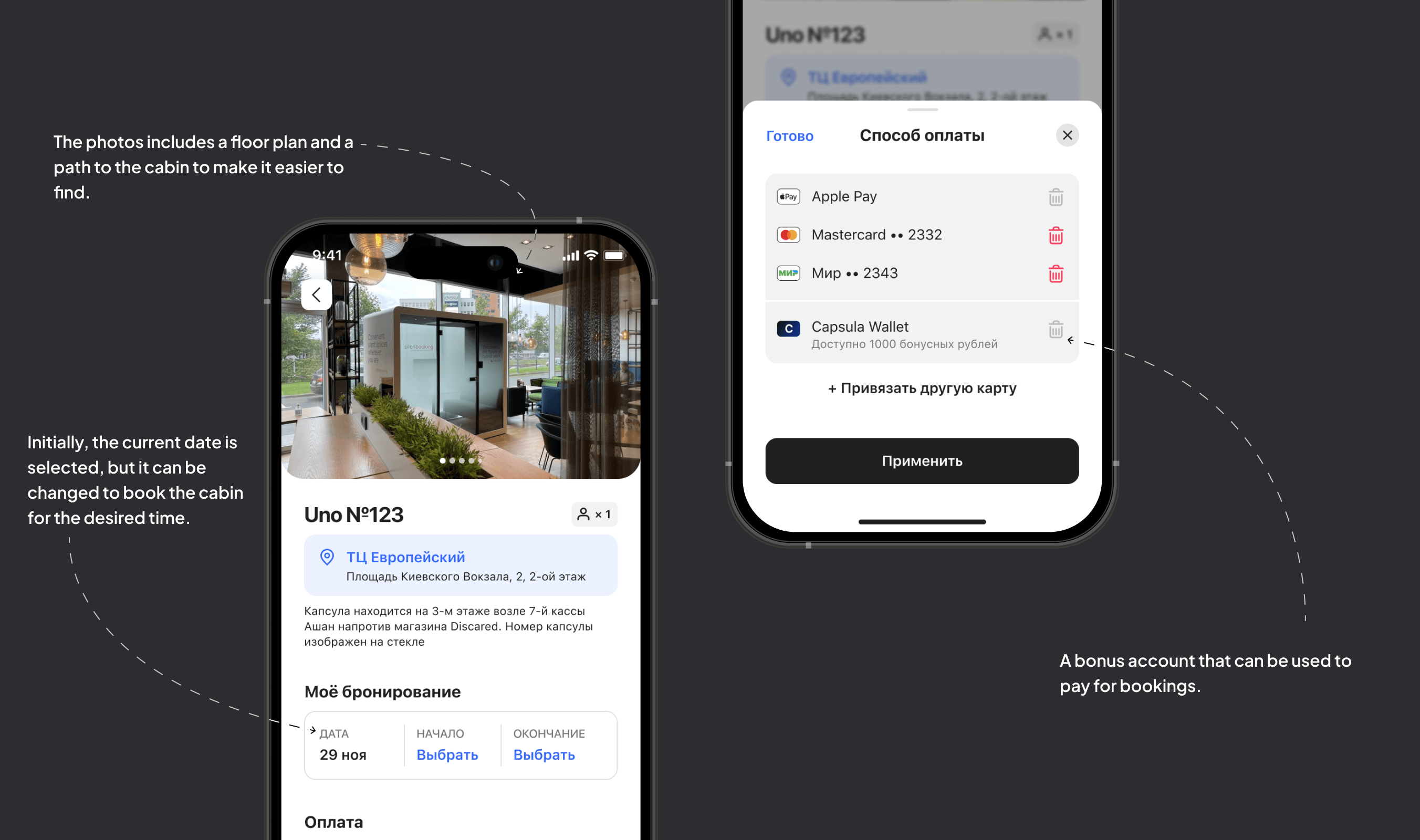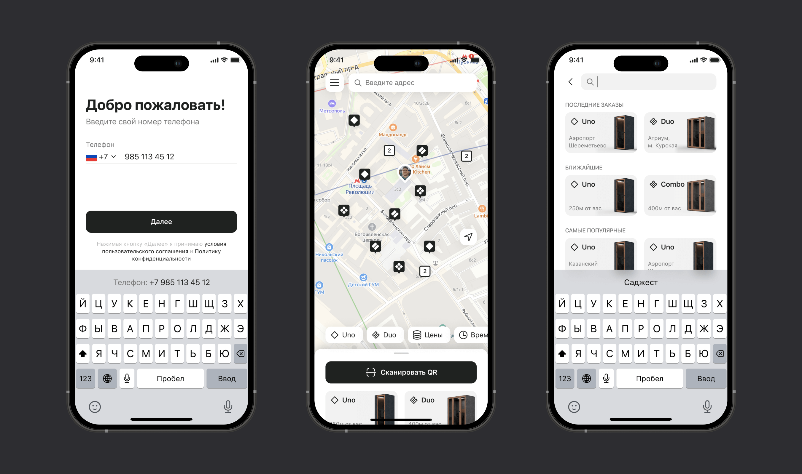 As part of the product development, an application for renting cabins in the city was created, a SAAS platform for cabin management, the company's website, and a web application in partnership with a major telecom provider.